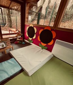 à partir d’exercices ludiques et de la respiration, les petits de la crèche de Charavines entrent dans une bulle de tendresse et de relaxation.