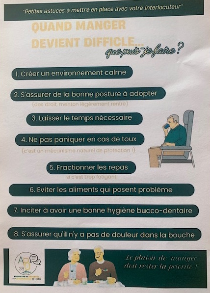 Après une présentation des aidants, l’intervention a démarré par la thématique de la déglutition (incluant une chaine neuro-sensorielle) .