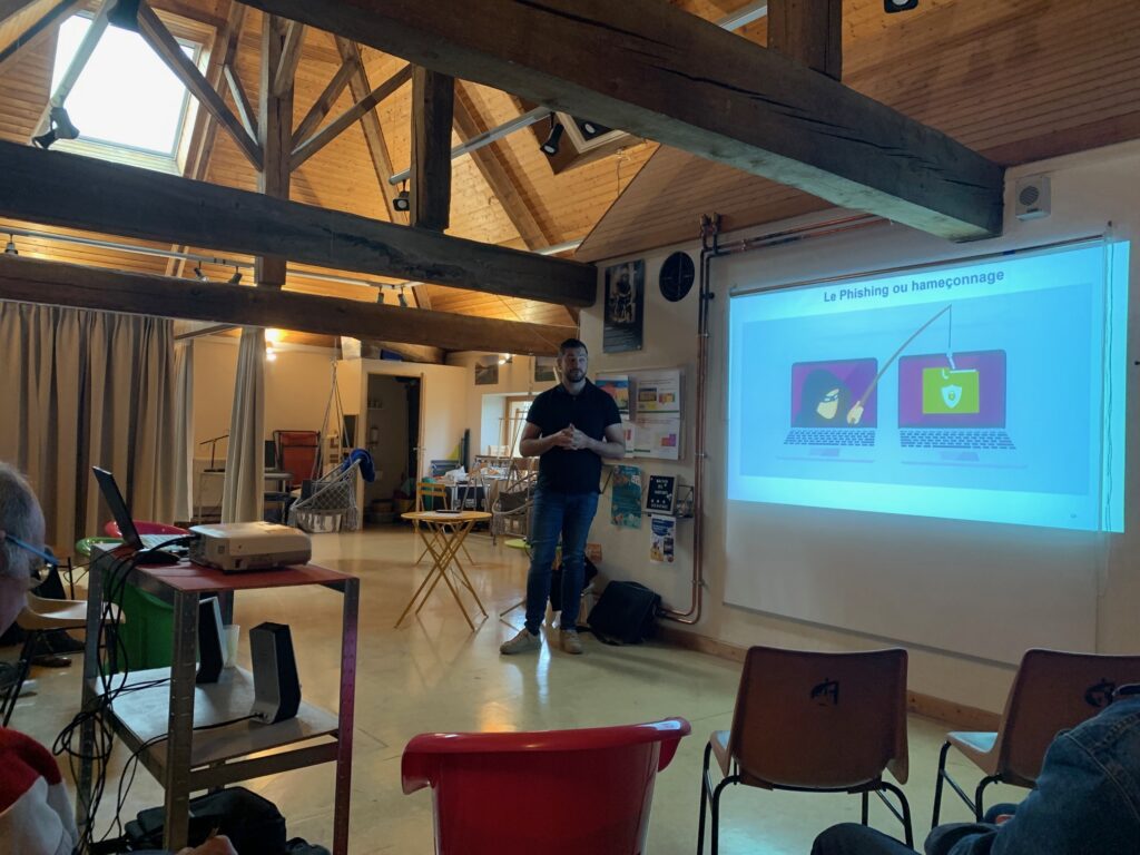 Aymeric a montré des situations concrètes (chevaux de Troie, la famille des “Wares à savoir ransomwares, spyware etc, les vers, l’hameçonnage avec les faux emails ..) et donné des conseils sur les bonnes pratiques à adopter afin d’anticiper ces attaques répétitives et insidieuses qui utilisent la peur pour manipuler une cible.